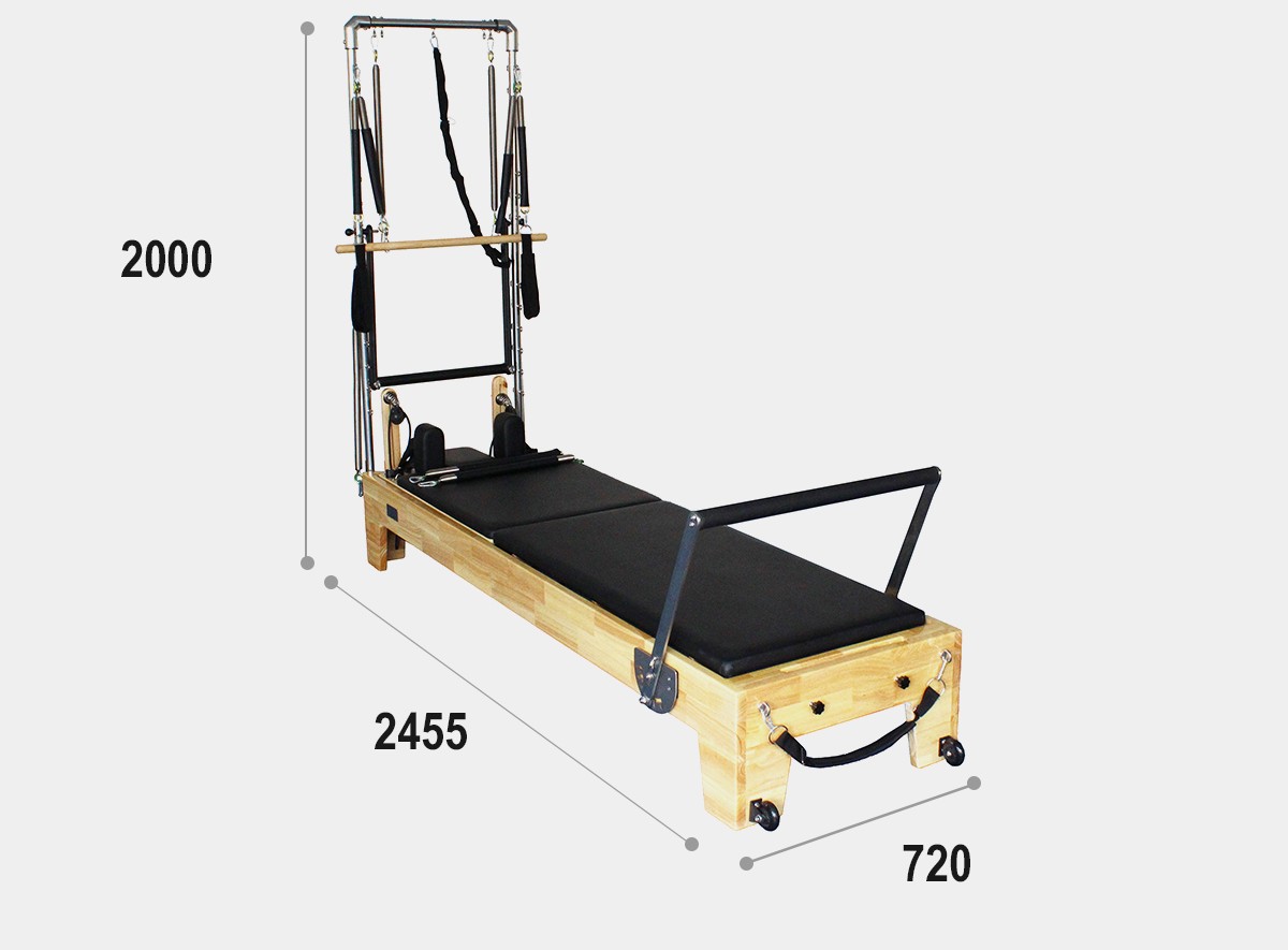 リフォーマーの基本動作に加えて、タワーを使用しキャデラックで行うようなトレーニングが可能
